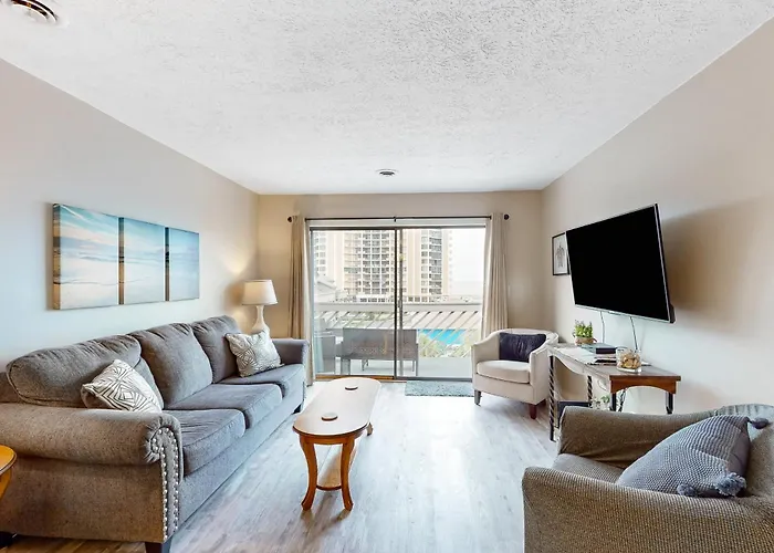 This 2-bedroom apartment offers a fully equipped kitchen with a refrigerator, an oven, and kitchenware, along with coffee/tea making equipment. The nearest airport is Myrtle Beach International, about 25 km from the apartment. Also, there is an outdoor swimming pool to ensure a more enjoyable stay.